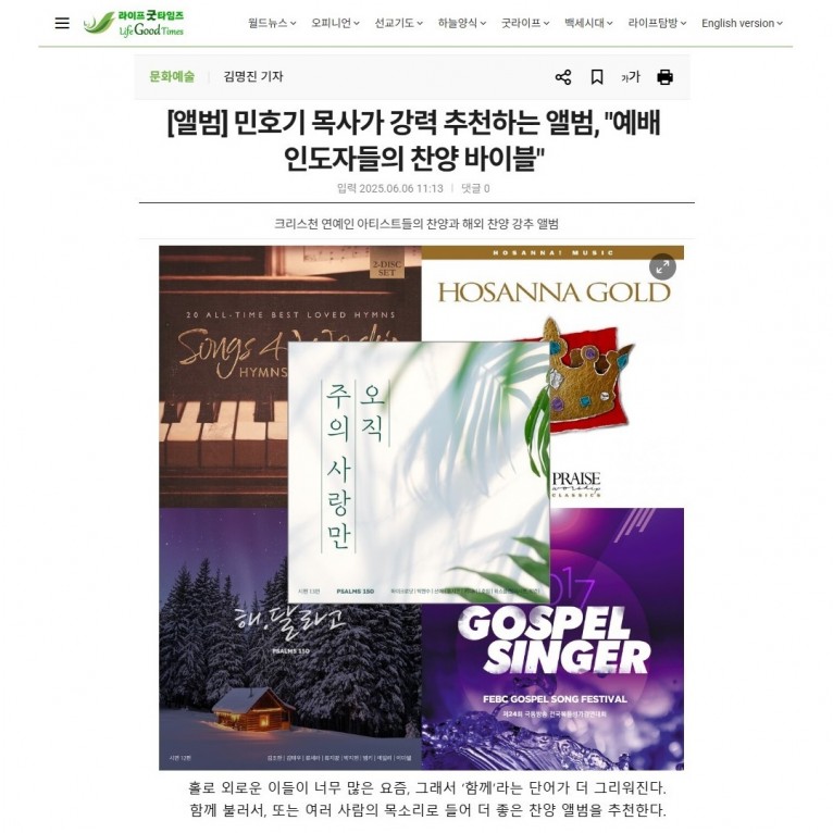 [기획기사] 민호기 목사가 강력 추천하는 앨범, 예배 인도자들의 찬양 바이블(라이프굿타임즈)