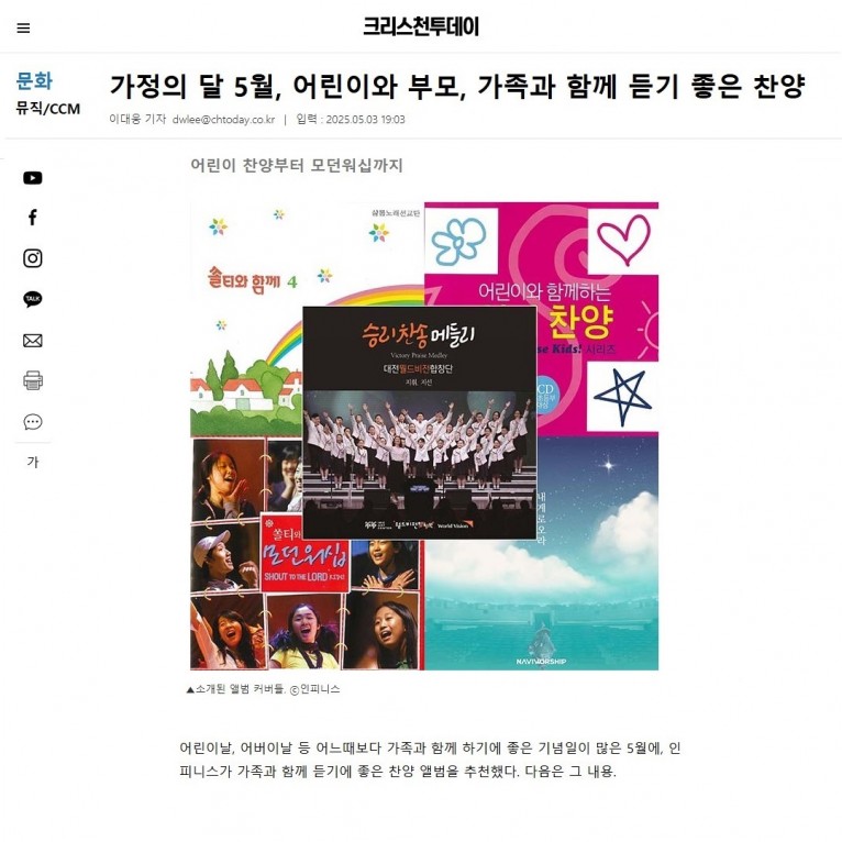 뮤직타임 [기획기사] 가정의 달 5월, 어린이와 부모, 가족과 함께 듣기 좋은 찬양(크리스천투데이)
