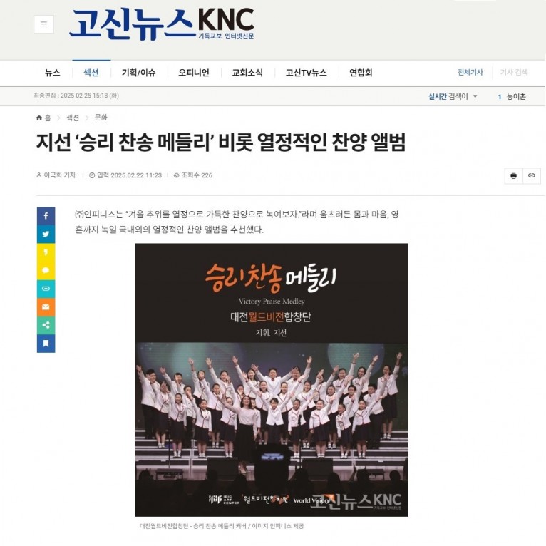 [기획기사] 지선 ‘승리 찬송 메들리’ 비롯 열정적인 찬양 앨범(고신뉴스 KNC)