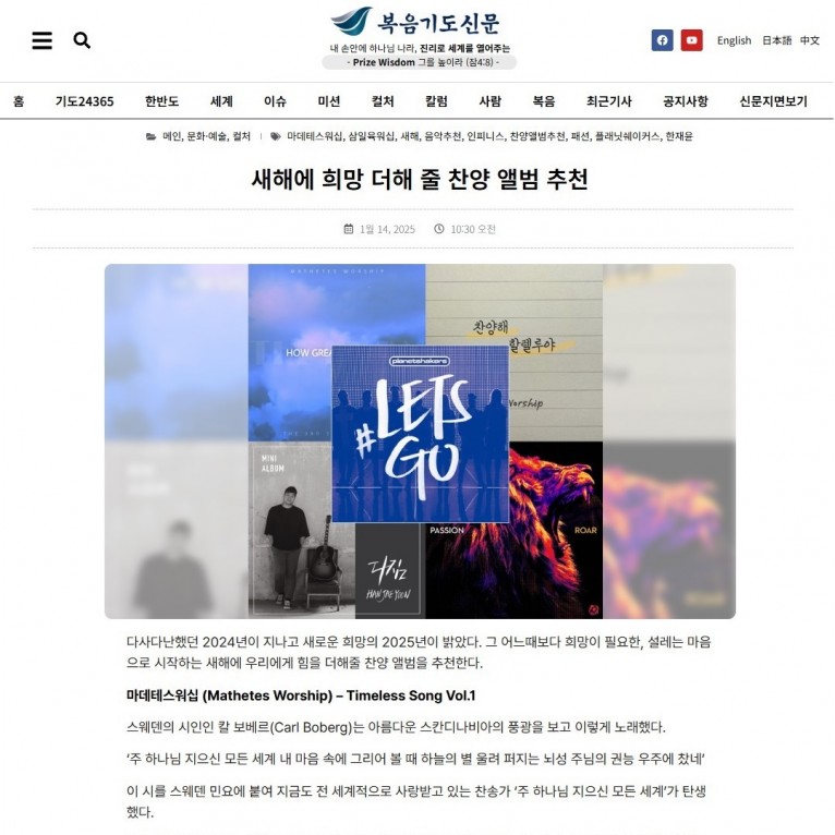 [기획기사] 새해에 희망 더해 줄 찬양 앨범 추천(복음기도신문)