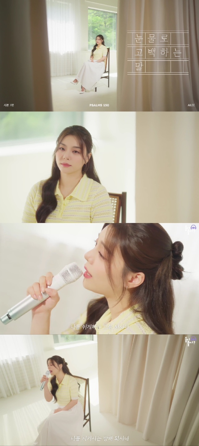 ‘눈물로 고백하는 말’은 성경의 시편 1편부터 150편까지 은혜로운 메시지를 아티스트들이 부르는 릴레이 프로젝트이자 ‘시편 150 프로젝트’에서 내놓는 일곱 번째 곡이다. 에일리 특유의 섬세한 가창력에 은혜로운 가사가 듣는 이들의 마음을 잔잔하게 울리며 감동적인 K-CCM으로 탄생됐다.