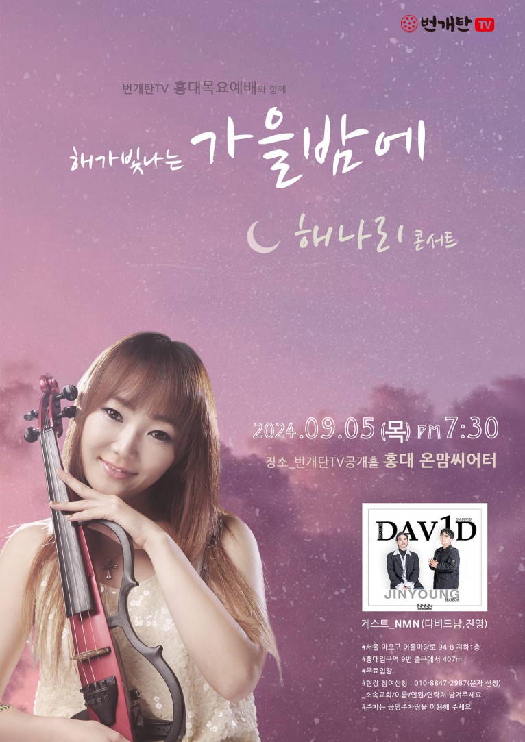 [보도자료] 번개탄TV 홍대목요예배와 함께 하는 전자바이올리니스트 해나리 콘서트 9월 5일 열려