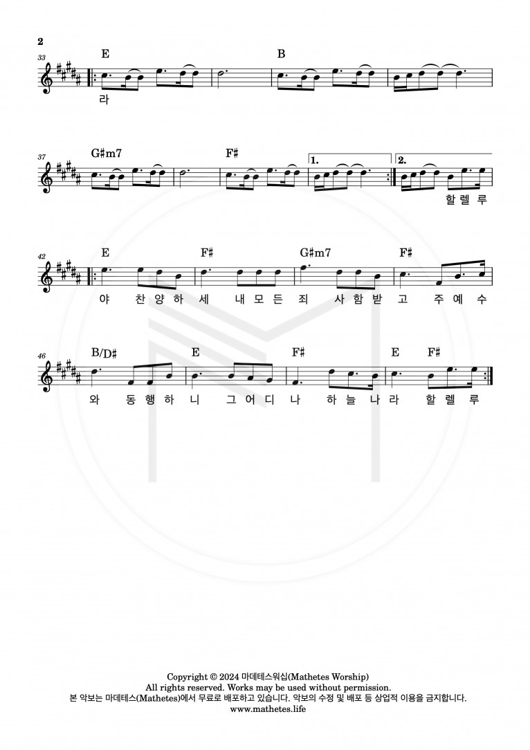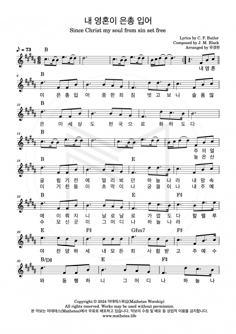 [악보] 내 영혼이 은총 입어 - 마데테스워십 (Mathetes Worship)