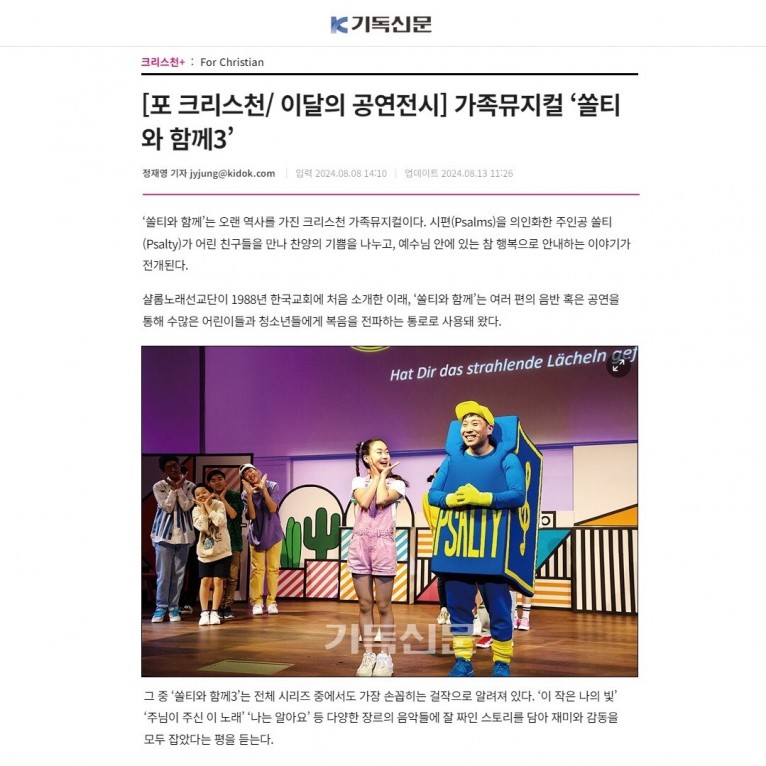[기사] 가족뮤지컬 ‘쏠티와 함께3’(주간기독신문)