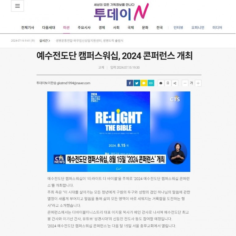 [보도] 예수전도단 캠퍼스워십, 2024 콘퍼런스 개최(기독교텔레비전 CTS TV)