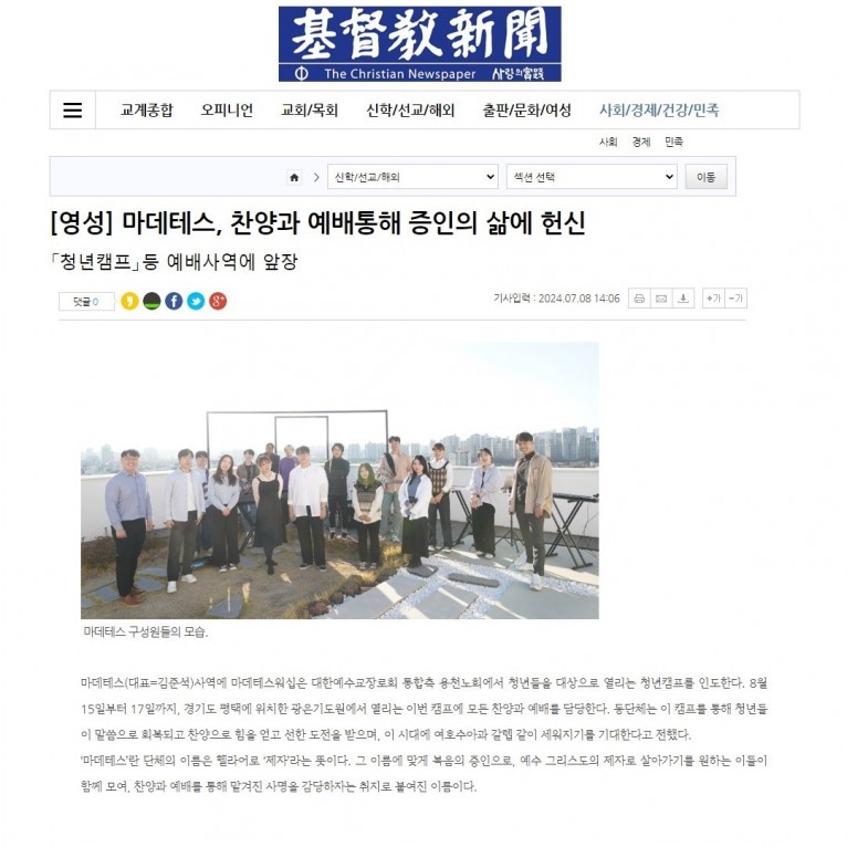 뮤직타임 [기사_인터뷰] 마데테스, 찬양과 예배통해 증인의 삶에 헌신(기독교신문)