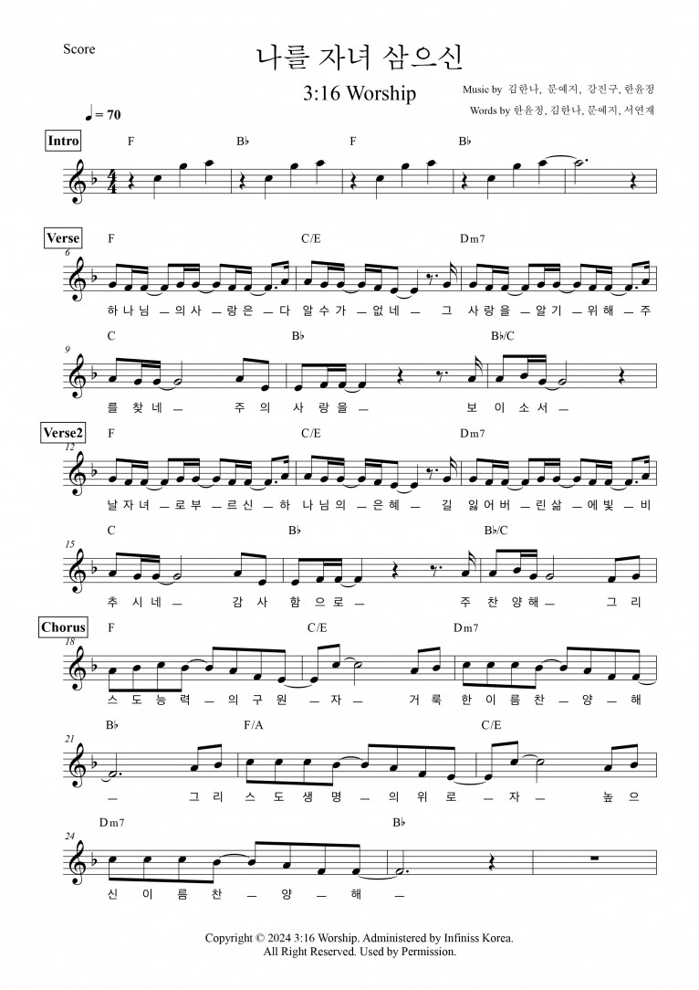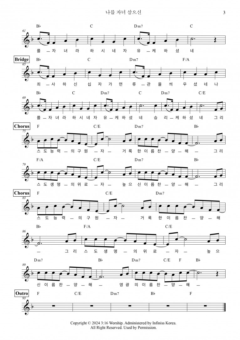 악보출처 https://shorter.me/5wRsm (3:16 Worship 구글 드라이브)
