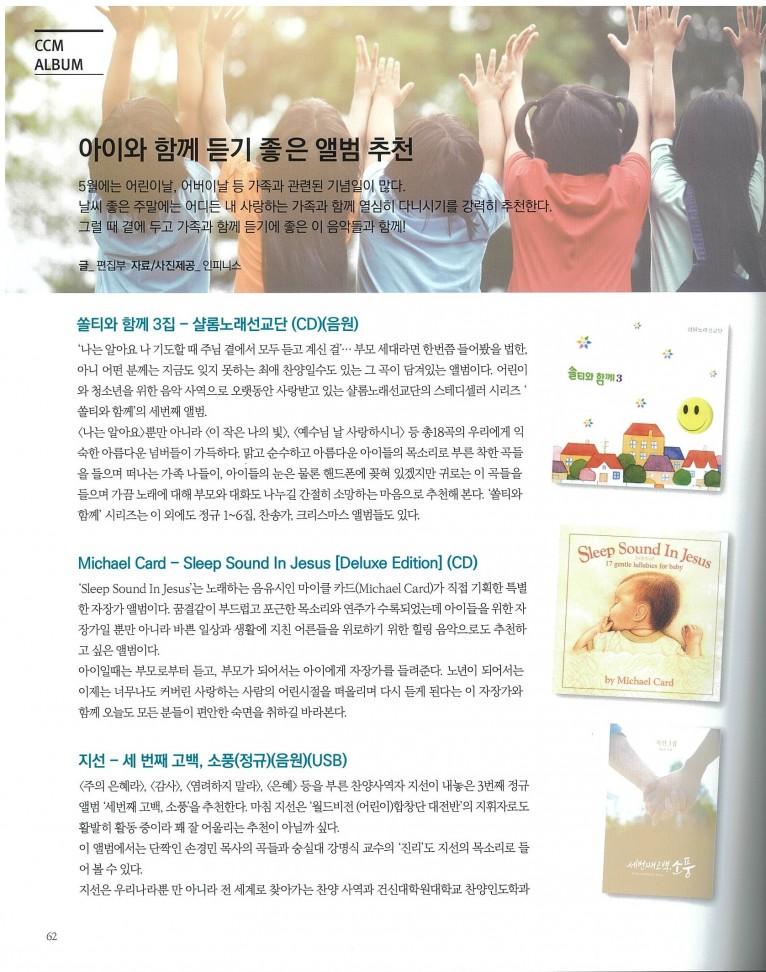 뮤직타임 [잡지] 아이와 함께 듣기 좋은 앨범 추천(월간 Church Media 2024.5월호)