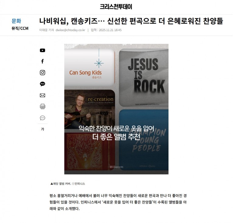 [기획기사] 나비워십, 캔송키즈… 신선한 편곡으로 더 은혜로워진 찬양들(크리스천투데이)