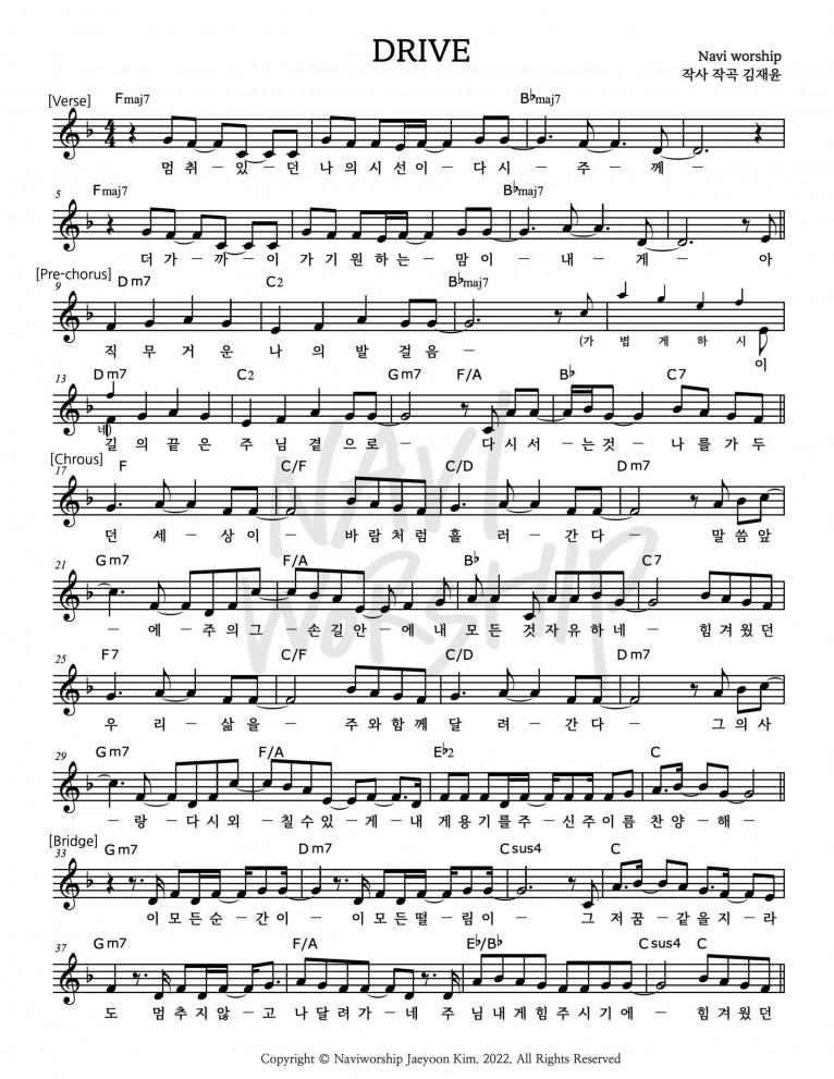뮤직타임 [악보] DRIVE - 나비워십