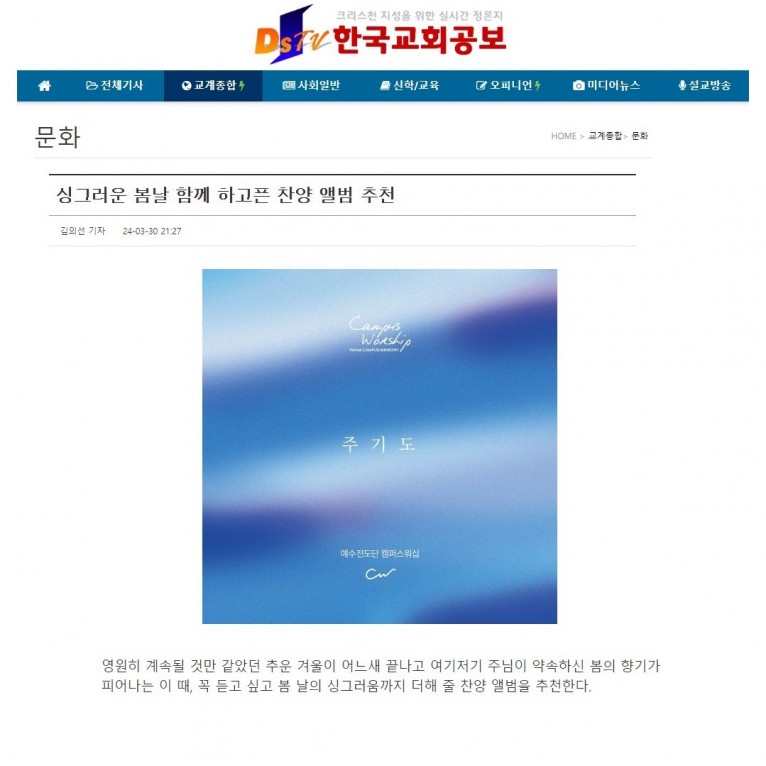 뮤직타임 [기획기사] 싱그러운 봄날 함께 하고픈 찬양 앨범 추천(한국교회공보)