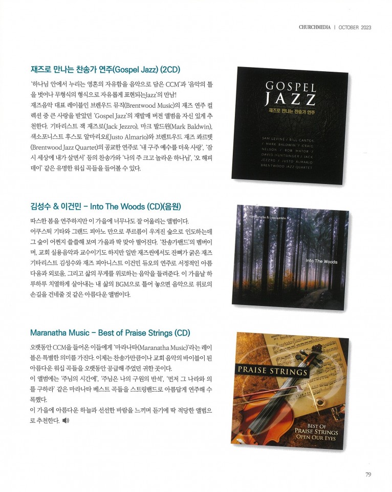 뮤직타임 [잡지] 가을을 닮은 아름다운 연주앨범 추천(월간 Church Media 10월호)