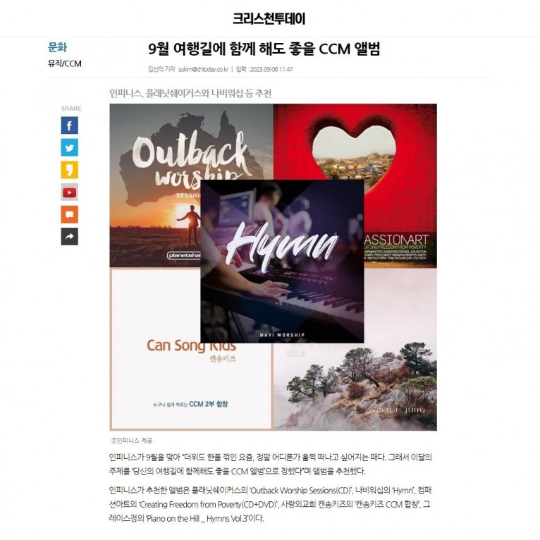 [기사] 여행길에 함께 해도 좋을 CCM 앨범(크리스천투데이)