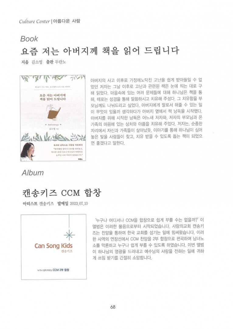 뮤직타임 [잡지] 캔송키즈 CCM 합창(월간 아름다운 사람 2023년 8월)