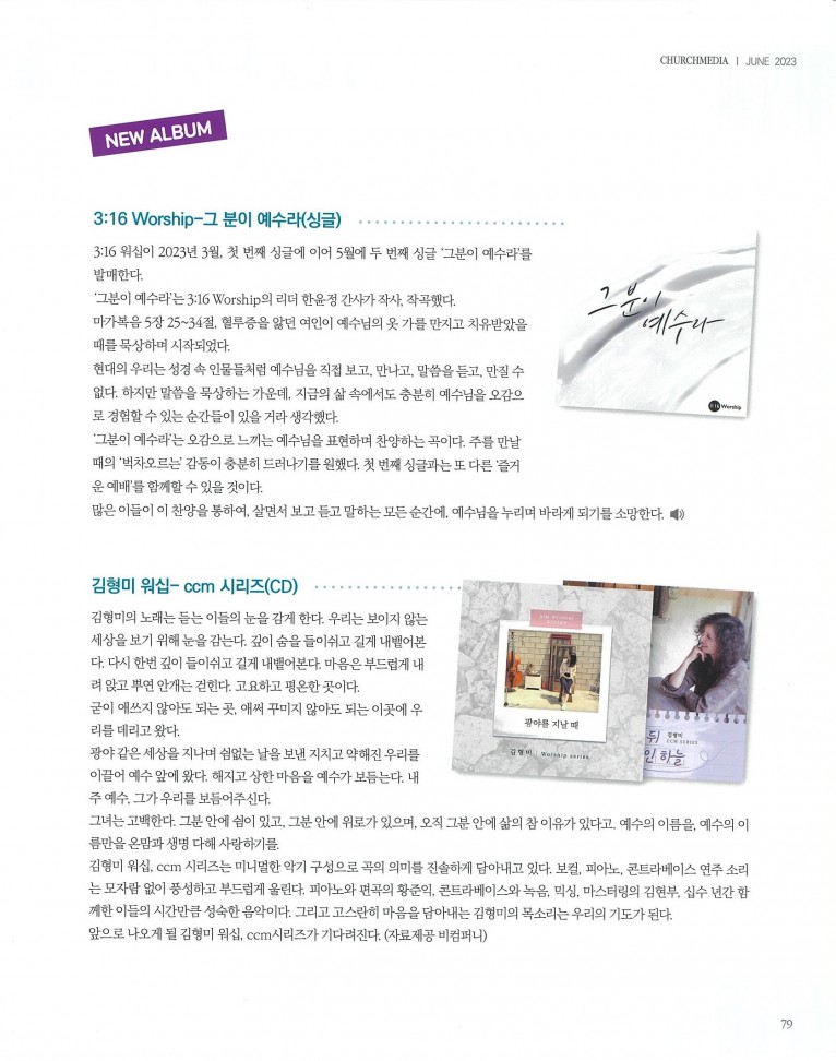 뮤직타임 [잡지] 3:16 Worship - 그 분이 예수라 (싱글) (월간 Church Media 6월호)