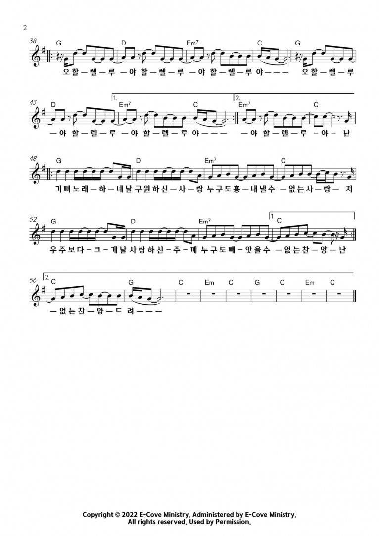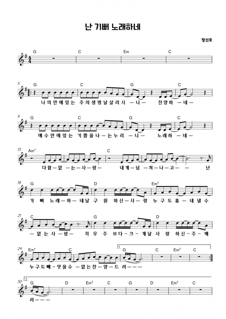 뮤직타임 [악보] 난 기뻐 노래하네 - E-Cove Ministry (이커브미니스트리)