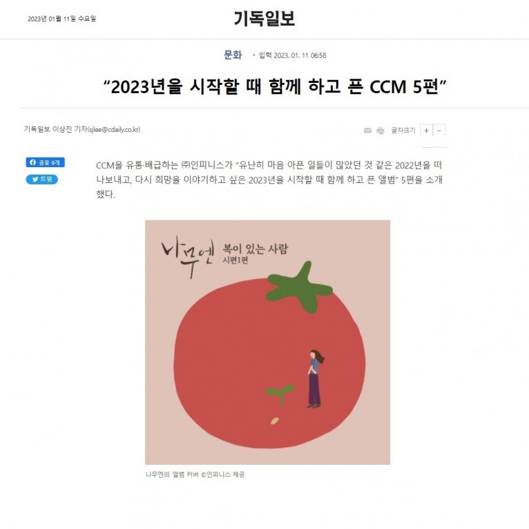 [기사] 2023년을 시작할 때 함께 하고 픈 CCM 5편