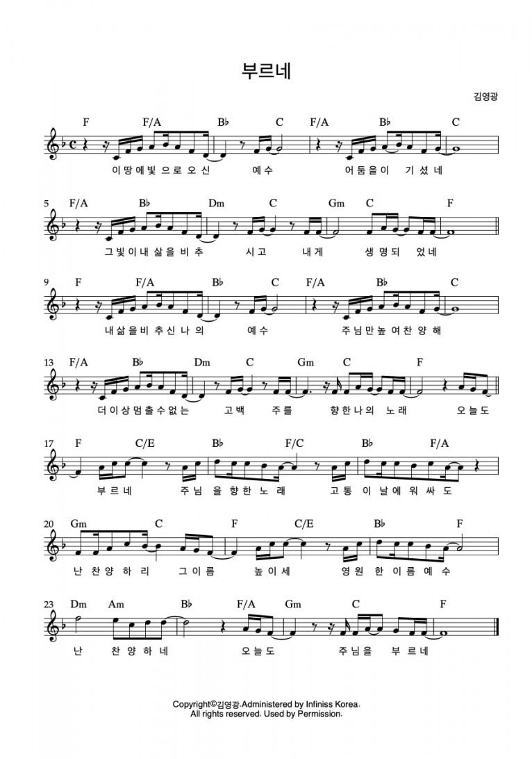 뮤직타임 [악보] 부르네 - 김영광 (예수의 사랑이) (EP)(음원)