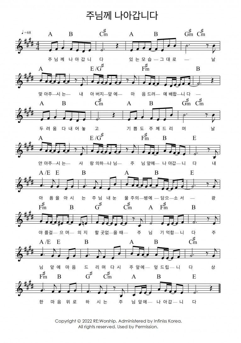 뮤직타임 [악보] 주님께 나아갑니다 - 리워십(RE:Worship)