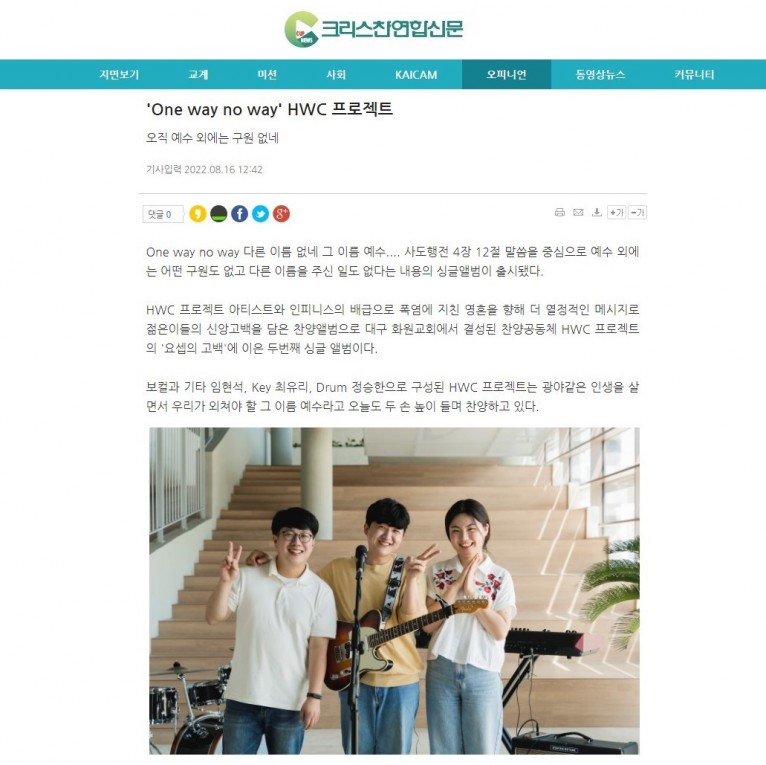 뮤직타임 [기사] 'One way no way' HWC 프로젝트 싱글발매