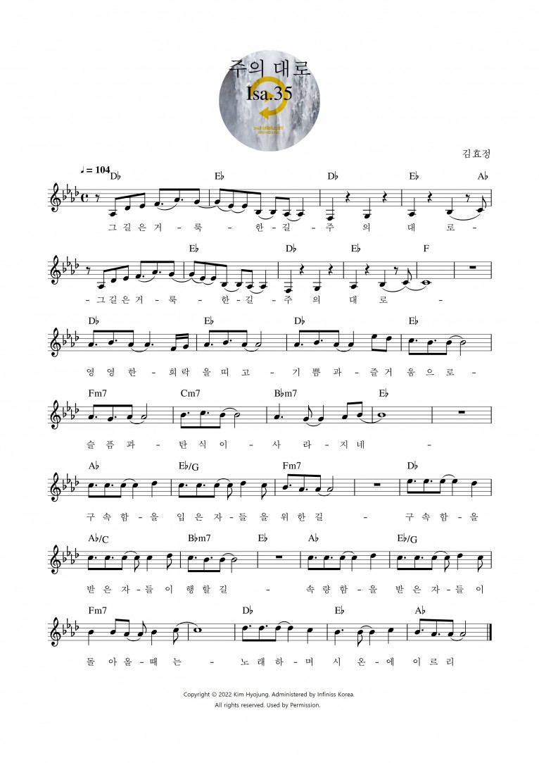 뮤직타임 [악보] 주의 대로_Isa.35 - 김효정 (2nd Hallelu:jah!)