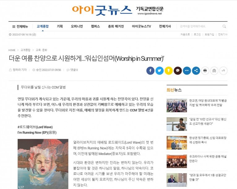 [기사] 더운 여름 찬양으로 시원하게…‘워십인섬머(Worship in Summer)’
