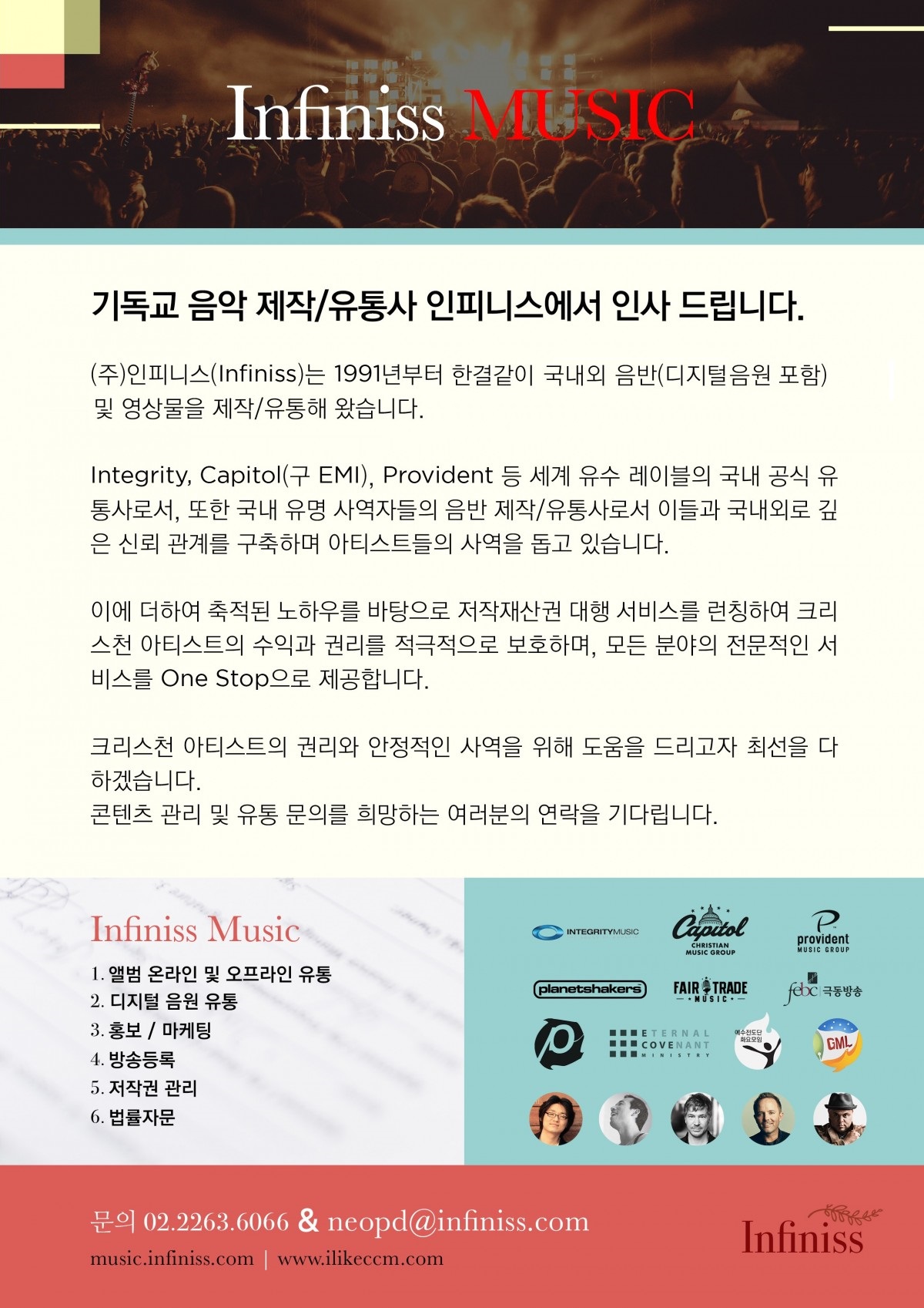 기독교 음악 제작/유통사 인피니스에서 인사드립니다.