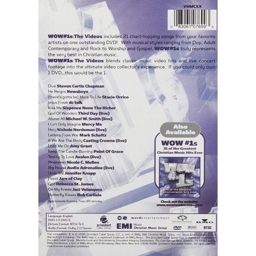 95년 발표되어 크리스천 음악계는 물론 일반음악계를 흔들었던 디씨 토크의 "Jesus Freak"는 일반 뮤직 비디오 계에서도 스타일리스트로 알려진 사이먼 맥스웰이 감독을 맡은 작품으로서 세월이 지나도 녹록치 않는 영상의 무게감을 던져준다. 또 같은 해 여름에 등장하여 신선한 충격을 던져준 컬리지락의 신성 (물론 지금은 활동 10년차의 베테랑 밴드가 된) 잘스 오브 클레이의 불세출의 히트곡 "Flood"의 뮤직 비디오 역시 밴드 멤버들의 풋풋한 외모와 함께 반가운 작품이다. 이제는 CCM 필드뿐만 아니라 일반 음악계에서도 '세계의 러브송'으로 자리매김한 식스 펜스 넌더 리쳐의 노래 "Kiss Me"의 뮤직비디오도 수록되어 있다. 이 곡은 그 유명세에 걸맞게 두 가지 버전의 뮤직 비디오가 만들어졌는데 이 [WOW #1s The Videos]에는 크리스천 아티스트이자 프로듀서, 영화감독으로 유명한 스티브 테일러 (그는 현재 마이클 W. 스미스 주연의 영화 [Second Chances]를 연출)의 연출 버전으로 수록되어 있다.