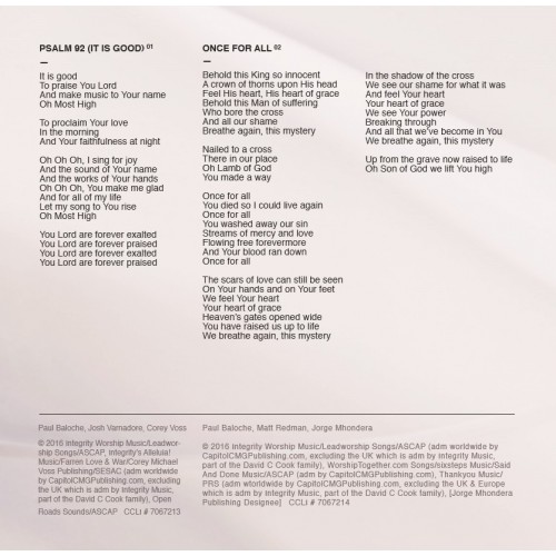 Vocalists: Josh Varnadore: “Psalm 92 (It Is Good)” Madison Cunningham: “We Come