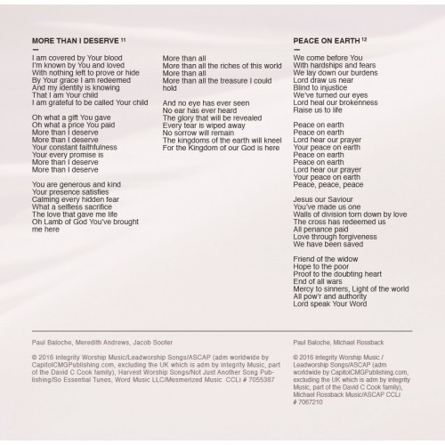 Meredith Andrews: “More Than I Deserve” Aaron Shust: “God Evermore”